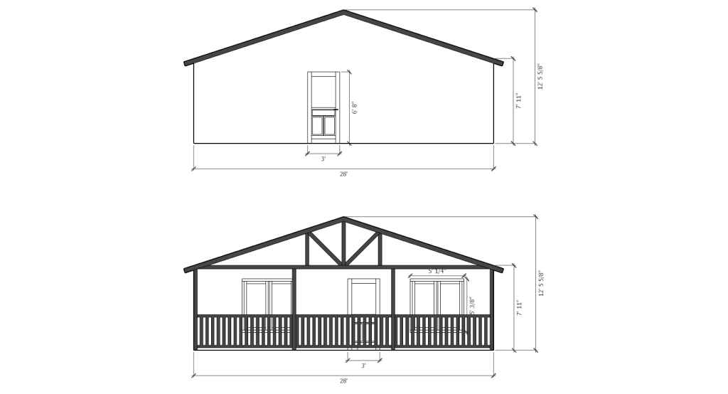 - pre-cut, 100mm x 200mm (4″x 8″) numbered roof purlins, beams, spaced 558mm (22″) or less
