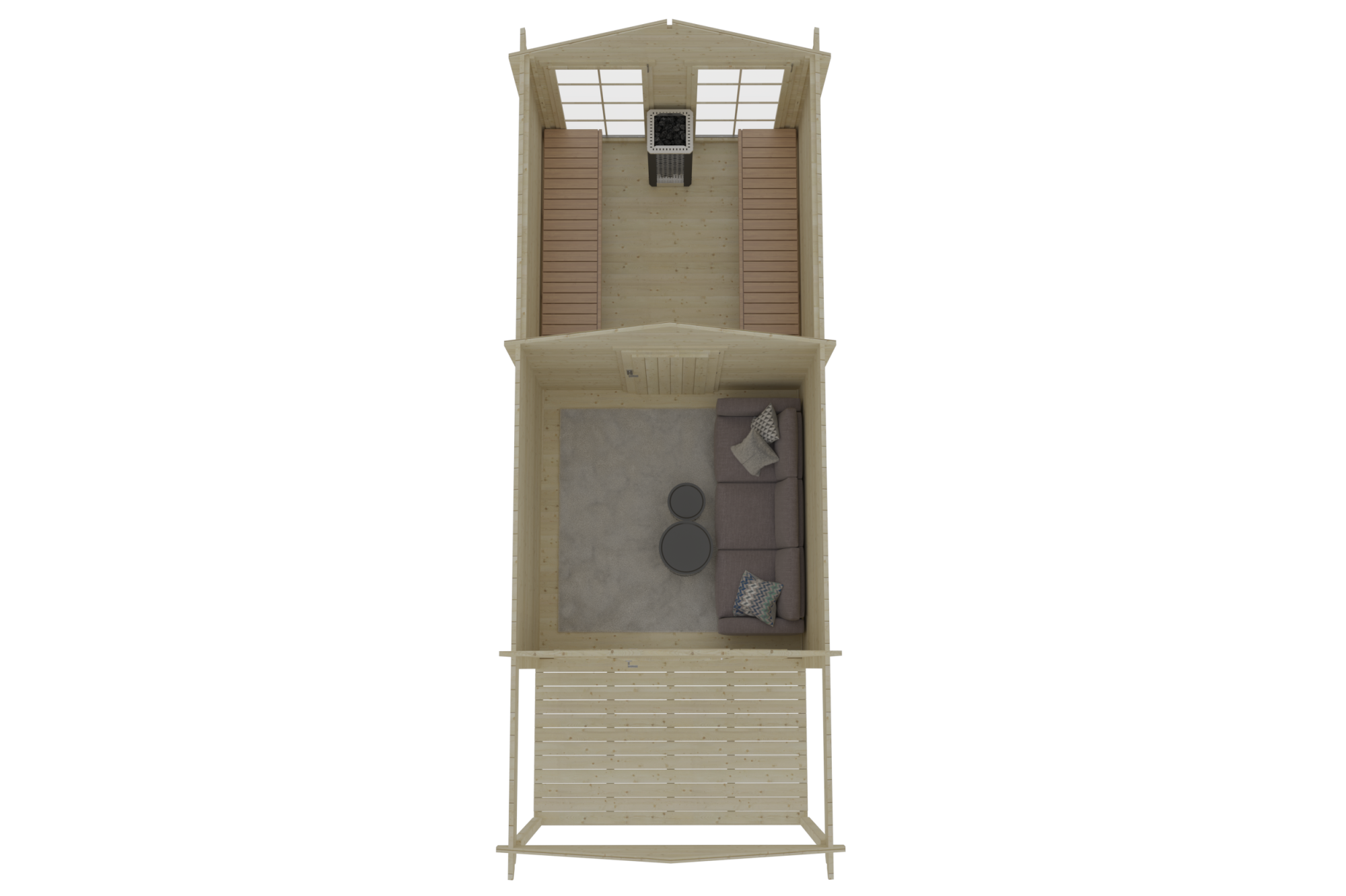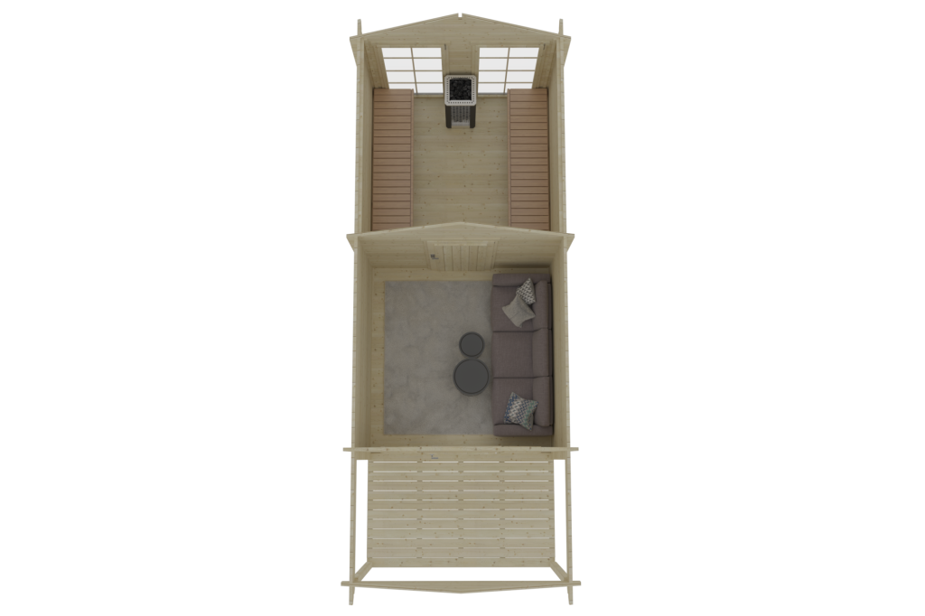 Sauna Dockside B is designed for comfort and energy efficiency. Insulation in the sauna room helps retain heat, supporting energy savings. The layout prioritizes ease and relaxation, while prefabricated components ensure a smooth and efficient assembly.