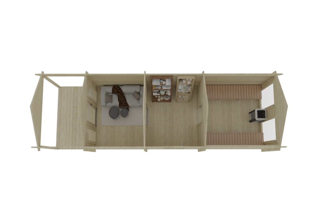 All sauna models include wooden benches, double ceilings with insulation in sauna rooms.