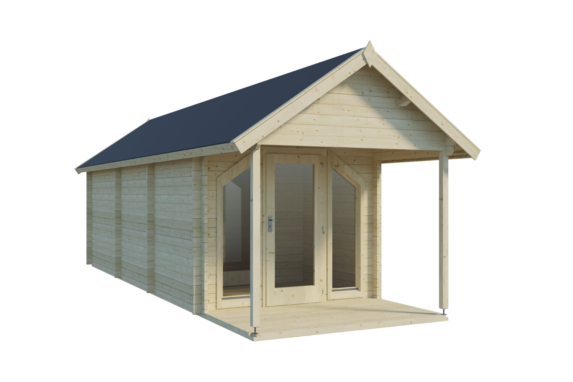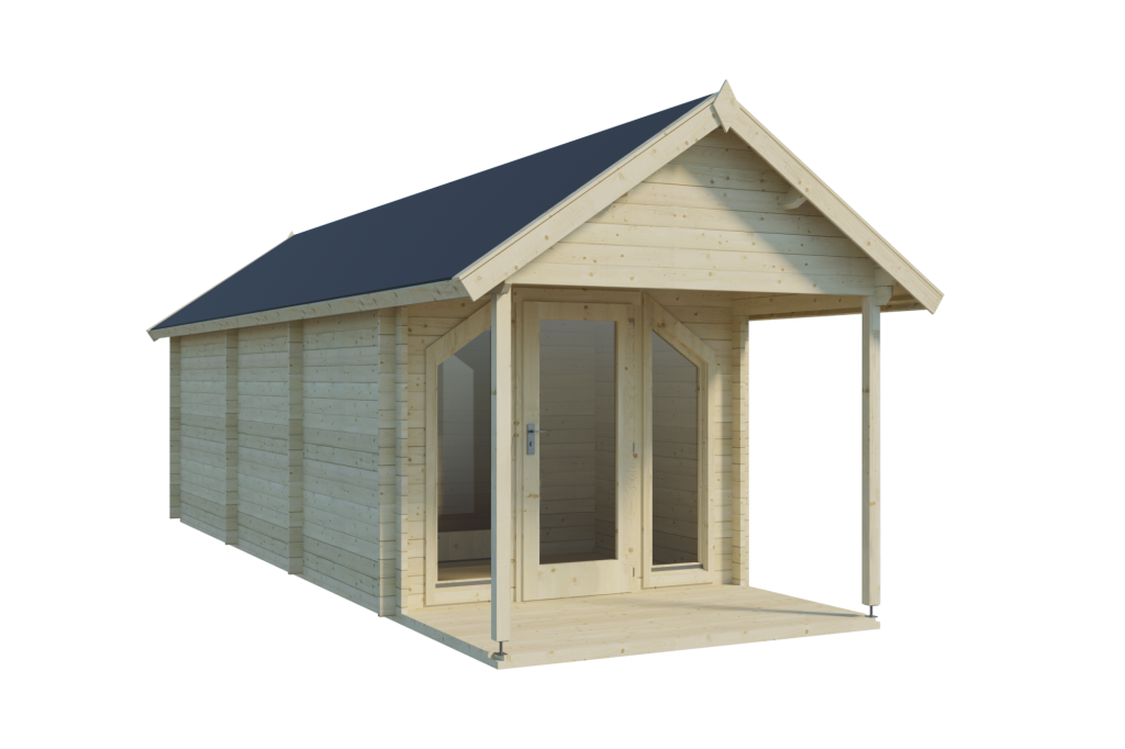 Sauna Dockside C is a refined structure designed with function in mind. Its distinctive Scandinavian-inspired form is complemented by large windows that bring in natural light and open up the space. A covered front deck extends the layout.