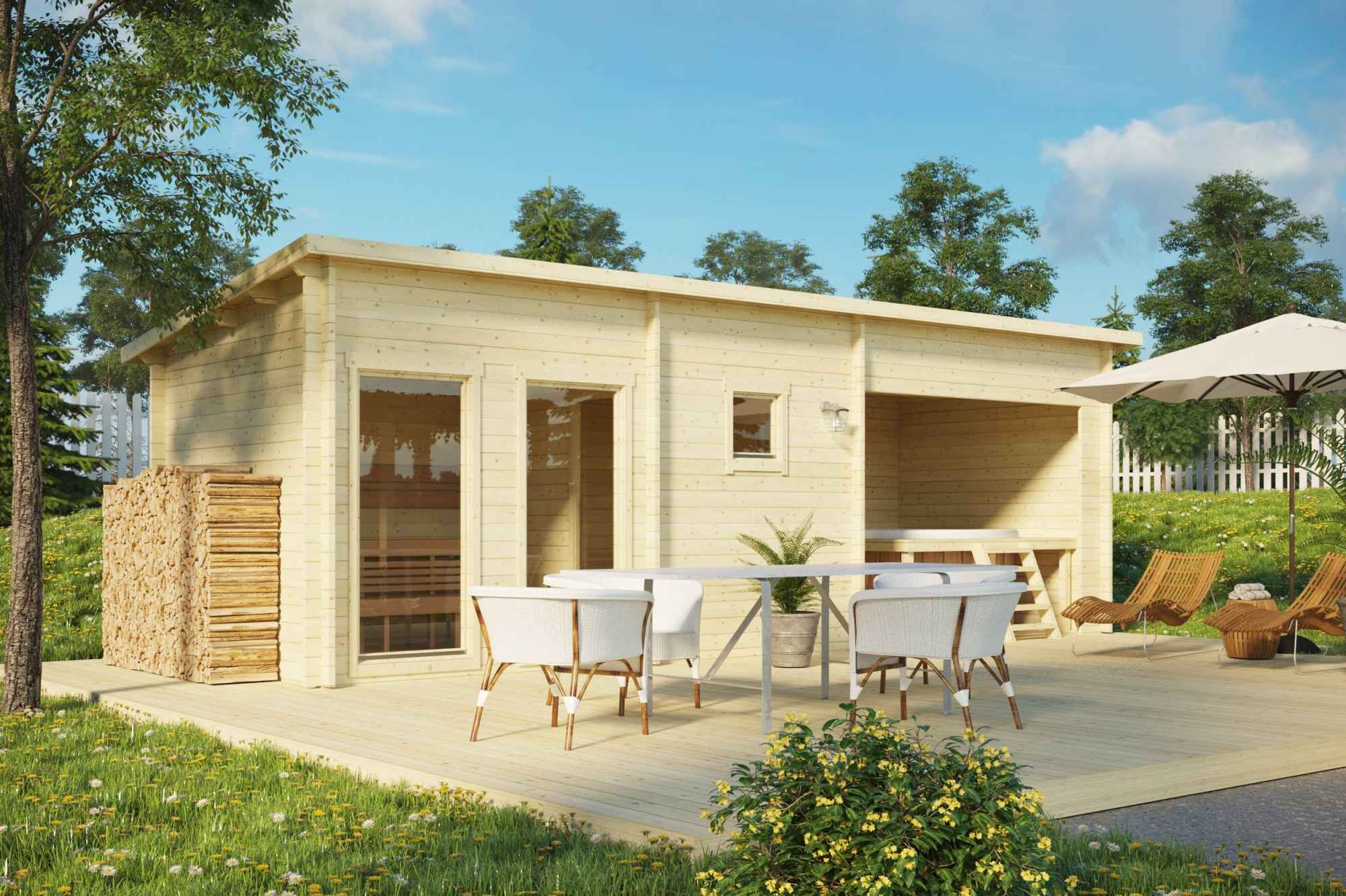 All sauna models include wooden benches, double ceilings with insulation in sauna rooms.