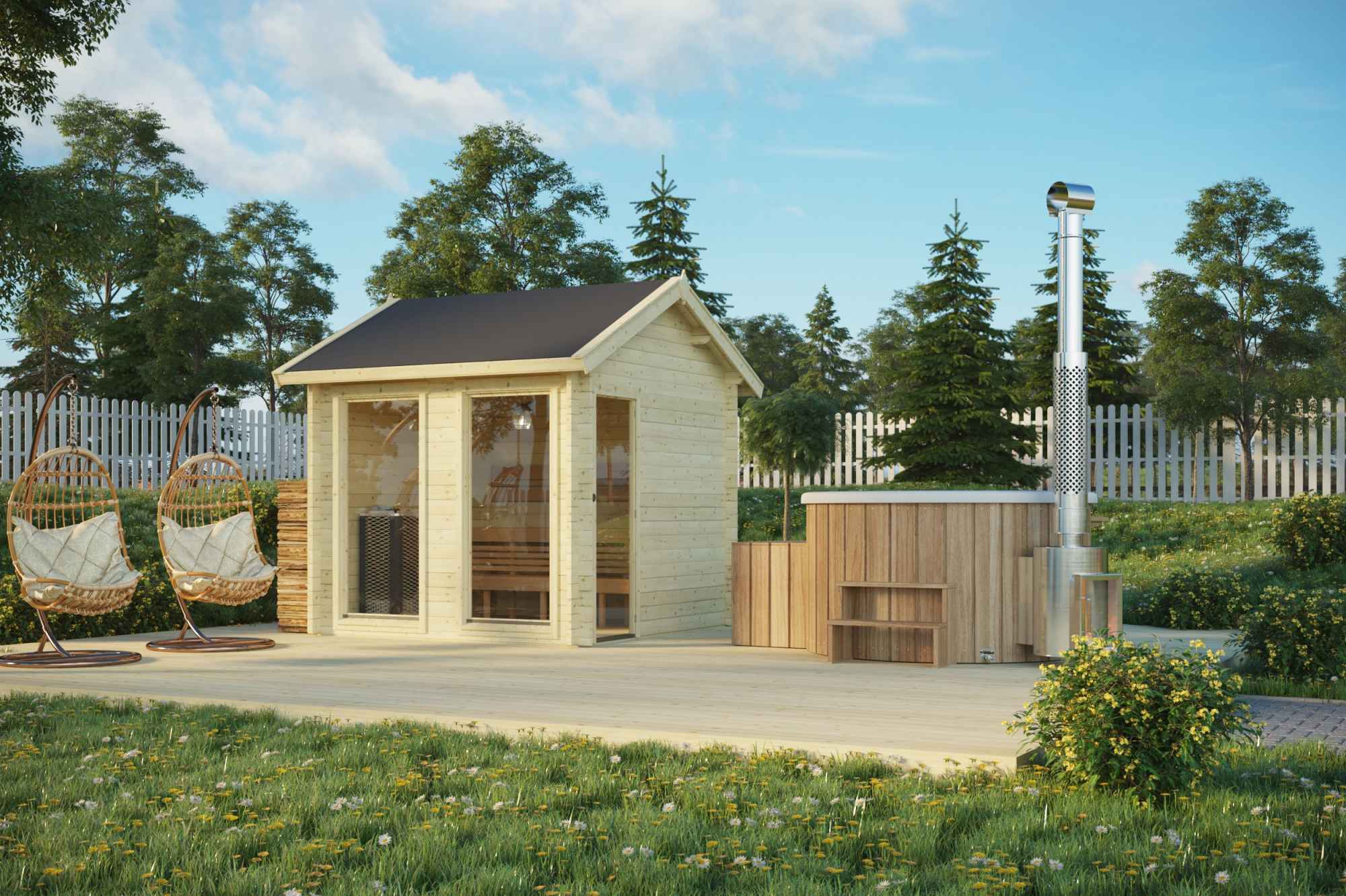 All sauna models include wooden benches, double ceilings with insulation in sauna rooms.