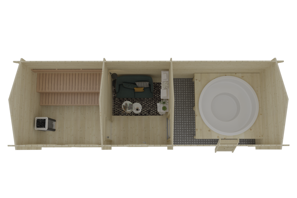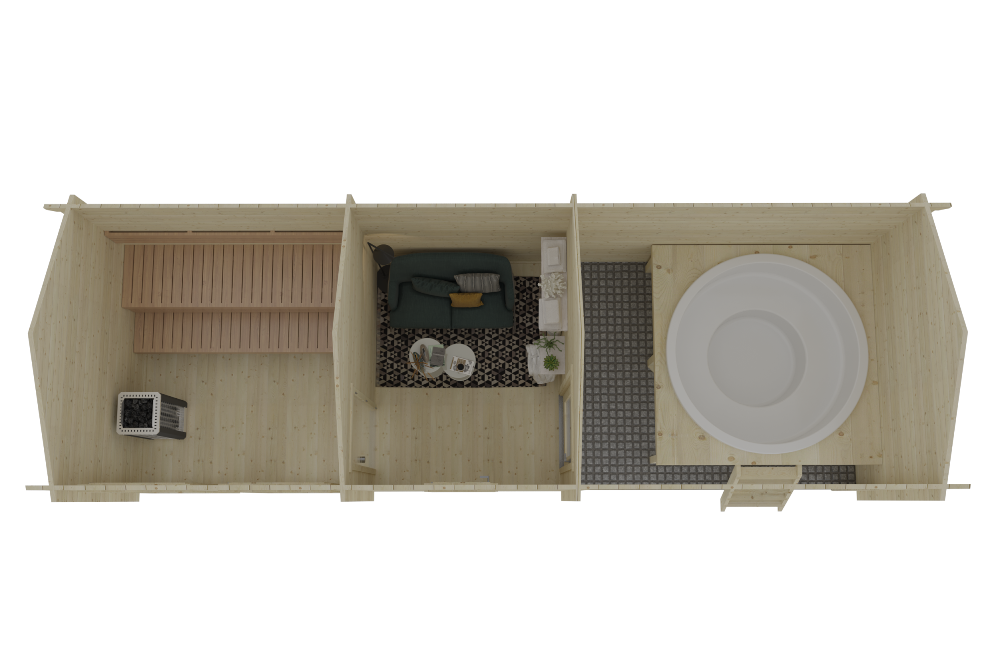 All sauna models include wooden benches, double ceilings with insulation in sauna rooms.