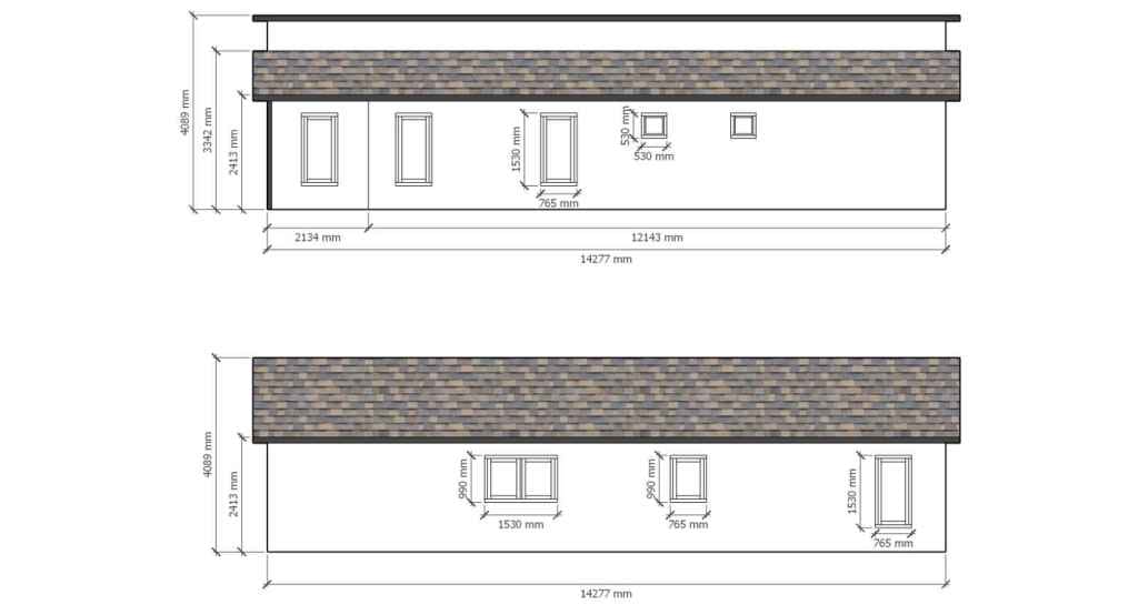 - pre-cut 4″ x 8″ (100mm x 200mm) glulam roof purlins/beams, spaced 22″ (558mm) or less