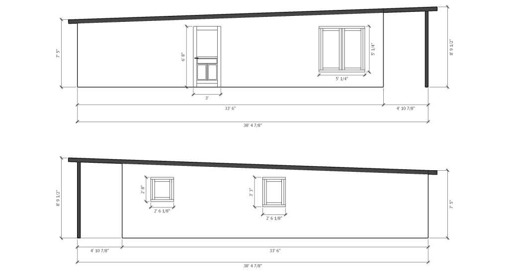 - pre-cut 4″x 8″ (100mm x 200mm) glulam roof purlins/beams, spaced 22″ (558mm) or less