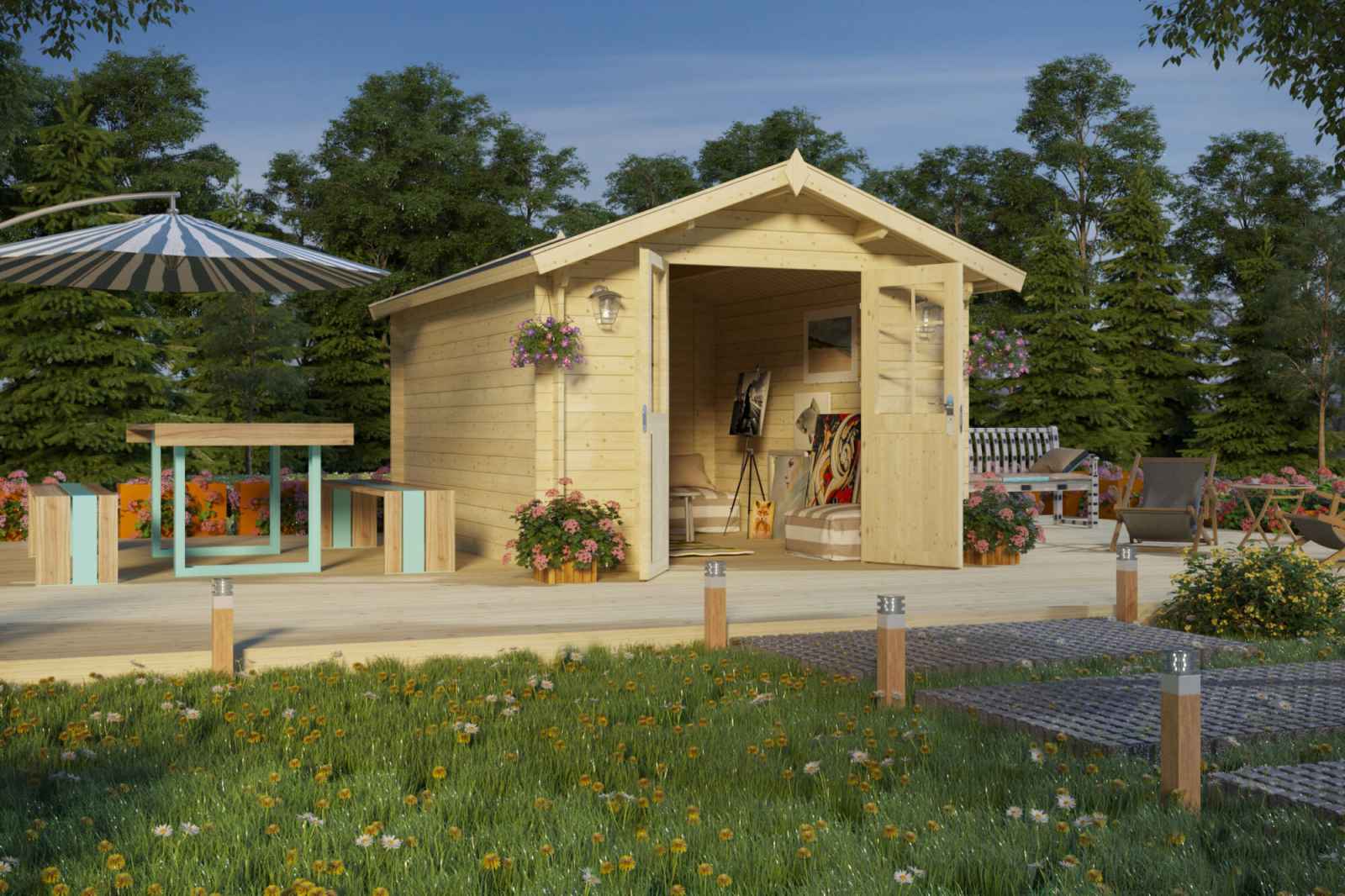 Tip: assemble on a LEVEL concrete slab, paving stones, or treated 4×4’s to raise the building off the ground